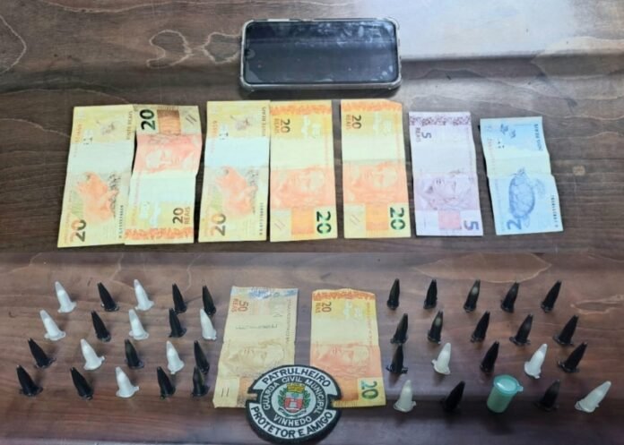Durante o patrulhamento os GCMs estranharam a movimentação do envolvido entregando algum produto aos ocupantes de um veículo que acabou deixando o local. Ao acompanhar o homem, que estava a pé, o viram descartando duas sacolas pelo caminho. Abordado, com ele foram encontrados R$ 177 em dinheiro, enquanto nas duas sacolas estavam 20 porções de cocaína em cada uma e, próximo delas, mais 210 eppendorfs – frascos de plásticos, usados pra embalar entorpecentes.