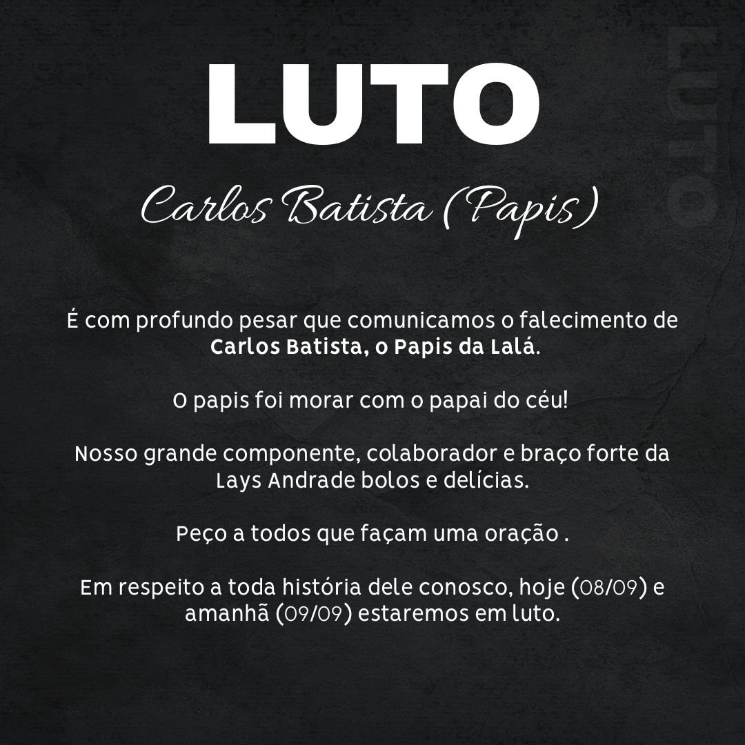 Comunicamos com pesar o falecimento de Carlos Batista, conhecido como Papis da Lalá, ocorrido no dia 08/09/2024.