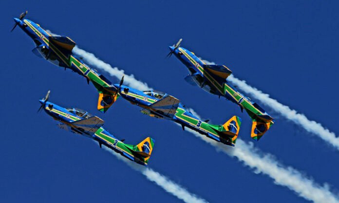 As apresentações incluem manobras como loopings, cruzamentos e formações em alta velocidade, sempre acompanhadas pelos tradicionais rastros de fumaça nas cores da bandeira nacional.