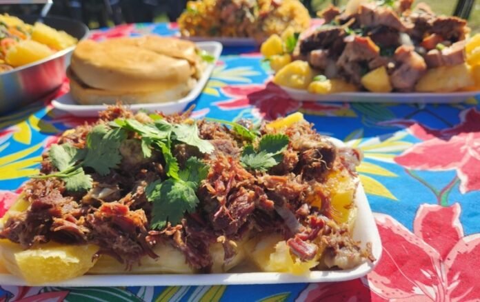 A gastronomia é um dos grandes destaques da festa. A praça de alimentação oferece pratos típicos como acarajé, baião de dois, sarapatel, buchada de bode e cuscuz, além de outras opções populares como torresmo de rolo, costelão, frango com polenta, hambúrguer artesanal, lanches, doces, churros e sorvetes.