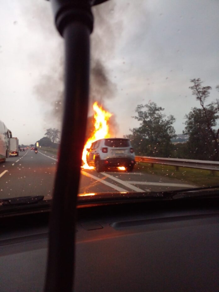 Veículo pega fogo no acostamento e Rodovia precisa ser fechada