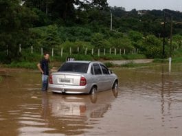 Rua Rancho Fundo alaga com chuva forte