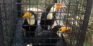 Tr?s tucanos filhotes s?o resgatados no Marambaia