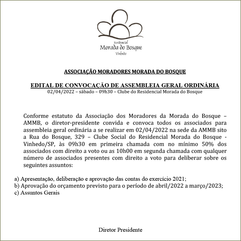 EDITAL ASSOCIAÇÃO MORADORES MORADA DO BOSQUE