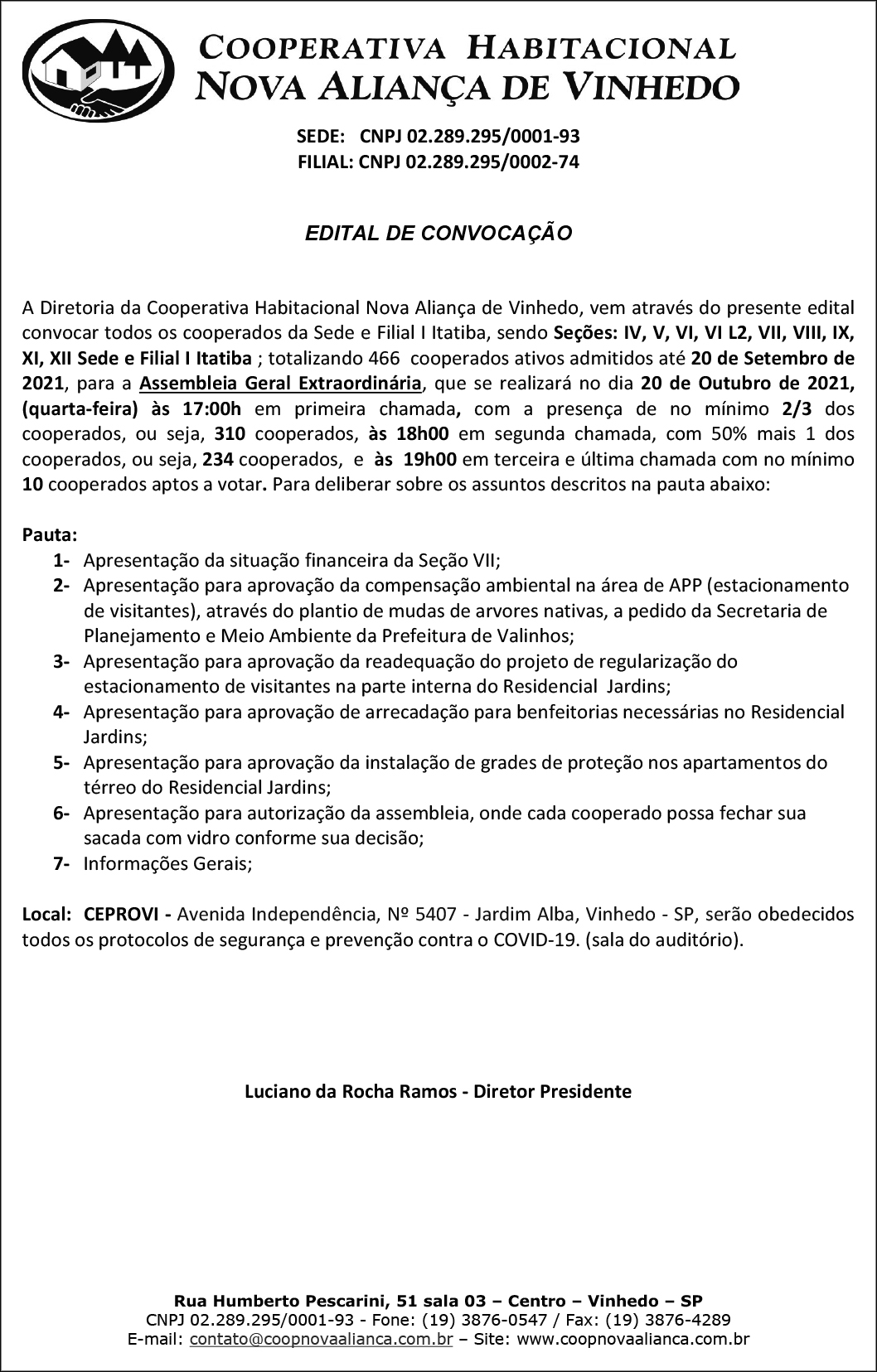 Edital Cooperativa Nova Aliança