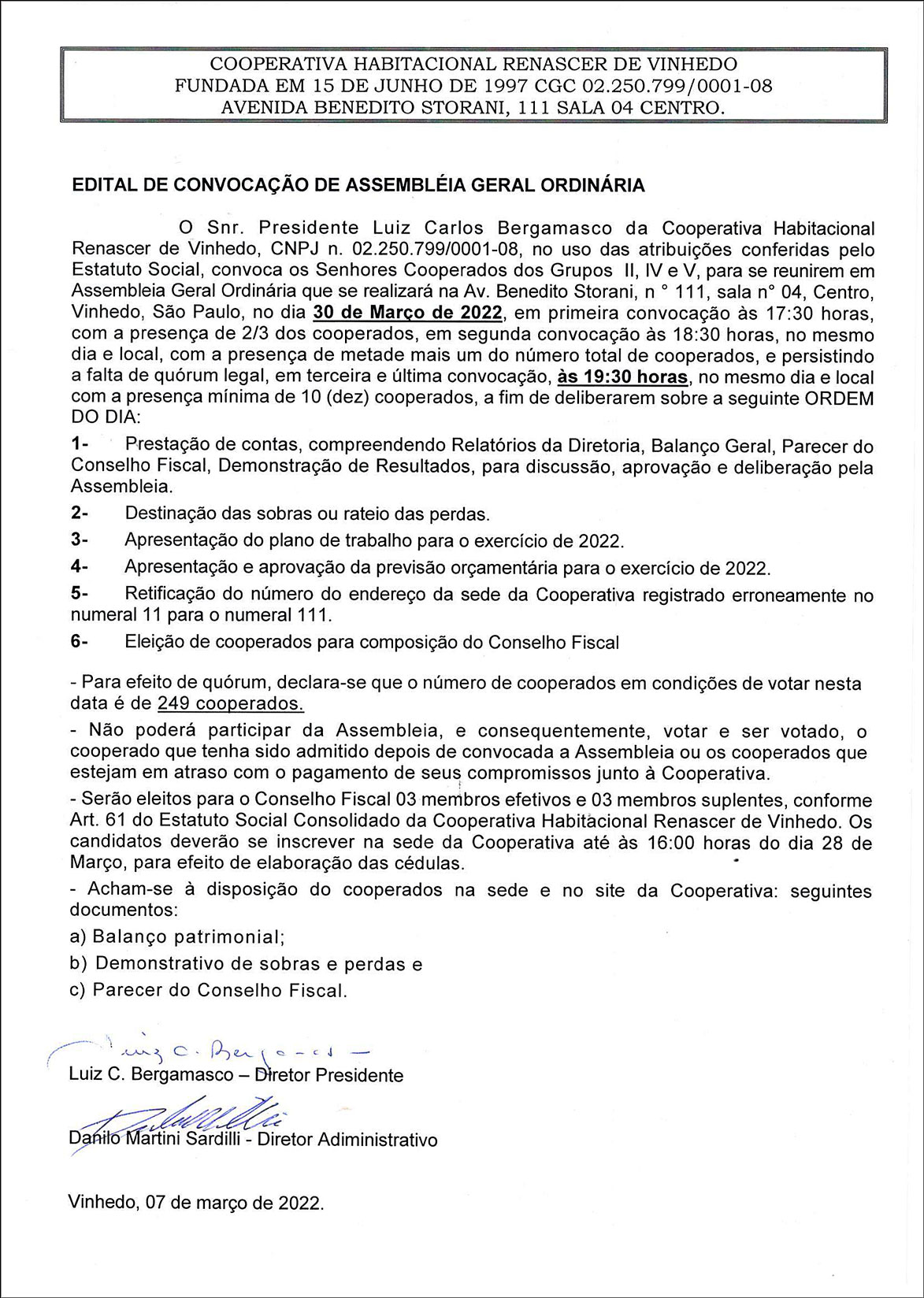 VinhedoEDITAL Edital de convocação Cooperativa Renascer de Vinhedo 14 de março de 2022 Share FacebookTwitterPinterestWhatsAppLinkedinEmailPrintTelegram propaganda do Google Artigo Top Propaganda do Google Artigo Baixo