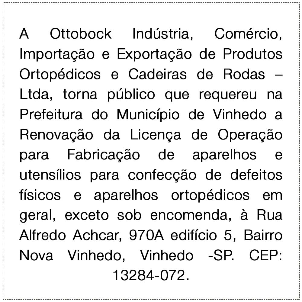 EDITAL LICENÇA DE OPERAÇÃO OTTOBOCK INDÚSTRIA