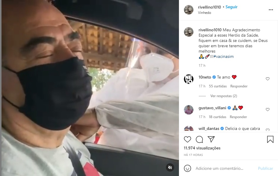 O ídolo do futebol brasileiro, Roberto Rivellino, 75 anos, foi vacinado contra a covid-19 nesta terça-feira, 16, em Vinhedo. O ex-jogador esteve presente no drive-thru do Parque Municipal Jayme Ferragut, onde recebeu a primeira dose.
