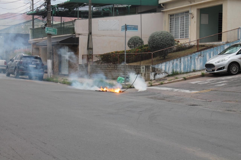Diante da situação, a equipe realizou imediatamente o isolamento da área, interditando o tráfego de veículos e pedestres, e acionou a CPFL para a desenergização do fio de alta tensão. Durante o procedimento de isolamento, o cabo entrou em curto-circuito, provocando chamas sobre o asfalto.