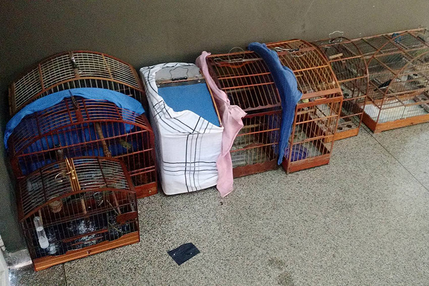 A Polícia Militar Ambiental recolheu na manhã deste domingo nove pássaros silvestres que estavam em gaiolas em uma residência na Morada da Lua. De acordo com informações, os animais estavam todos sem registro. Entre os animais havia picharos, colerinhas e bigodinhos, todos da fauna silvestre brasileira.