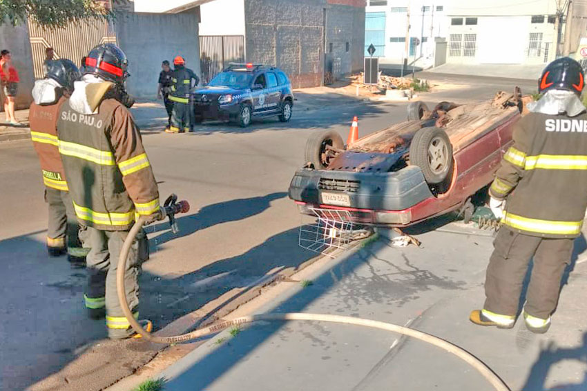 O motorista de um veículo Fiat Tipo capotou na tarde deste domingo, 19, no Bairro Espírito Santo, em Valinhos.